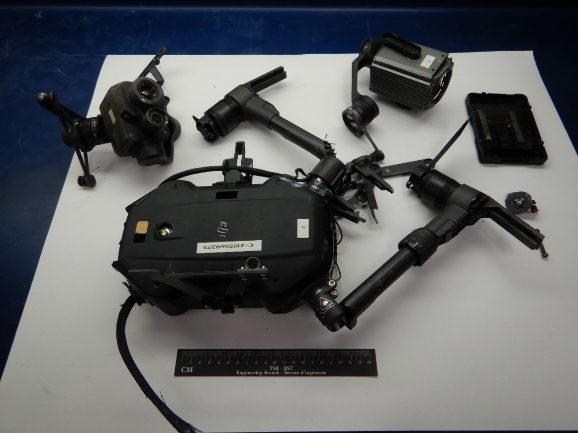 Le DJI Matrice M210 a été détruit en conséquence de la collision. La plupart de ses pièces ont été récupérées près du lieu de l’opération policière par les membres de la YRP, après une brève recherche. Les pièces ont été envoyées au Laboratoire d’ingénierie du BST à Ottawa (Ontario). La mémoire non volatile récupérée de l’ATP a fourni des données sur la position exacte de l’ATP au moment de la collision. Cette position correspond à celle du Cessna et se trouvait le long de la trajectoire normalisée de l’approche finale vers la piste 15.