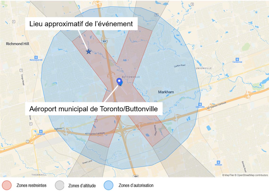 Le pilote de l’ATP en question connaissait l’application NAV Drone et savait que le vol du jour de l’événement se déroulerait entièrement dans la zone de contrôle de CYKZ, ce qui nécessitait une autorisation de l’ATS.