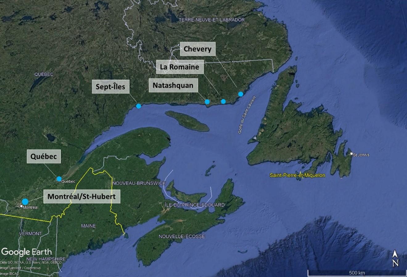 - de CYQB à l’aéroport de Sept-Îles (CYZV);