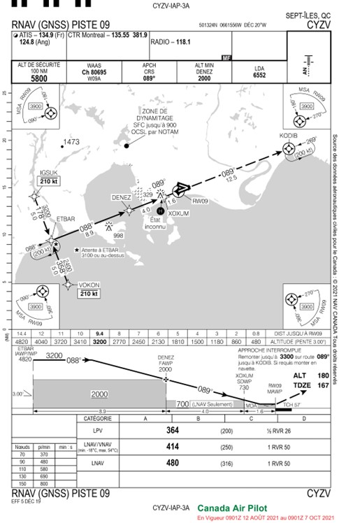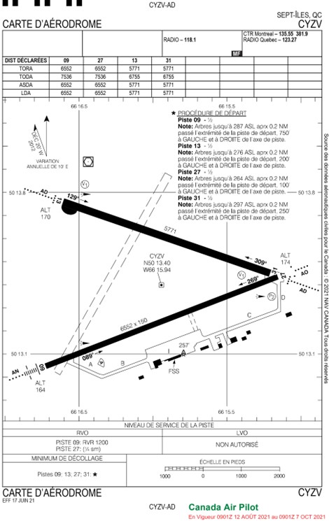 Source : NAV CANADA, Canada Air Pilot (CAP), CAP 6 : Québec, en vigueur du 12 août 2021 au 7 octobre 2021