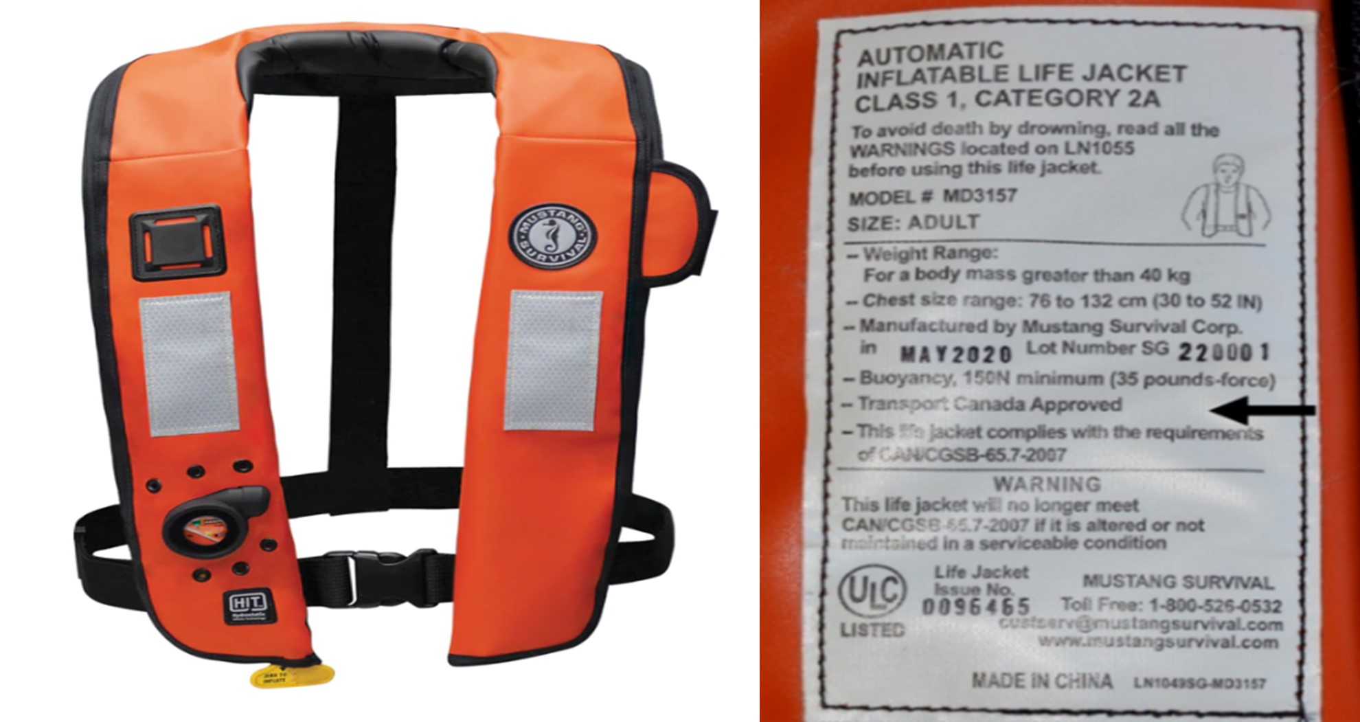 - Si les occupants d’un aéronef portent des vêtements de flottaison individuels qui ne respectent pas les normes et les exigences du Règlement de l’aviation canadien autorisant leur utilisation en aviation, il y a un risque qu’en cas d’écrasement dans l’eau, le vêtement de flottaison individuel entrave ou empêche une évacuation subaquatique sécuritaire.