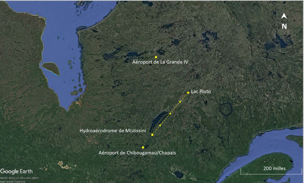 Peu après son arrivée au quai, le pilote a été informé qu’il allait effectuer un vol nolisé à destination du lac Pluto (Québec), situé à environ 135 milles marins (NM) au nord-est. Il était prévu que le pilote décolle seul de CSE6, avec seulement du fret à bord, et qu’à la destination, il dépose le fret, prenne 3 passagers et les ramène à CSE6.