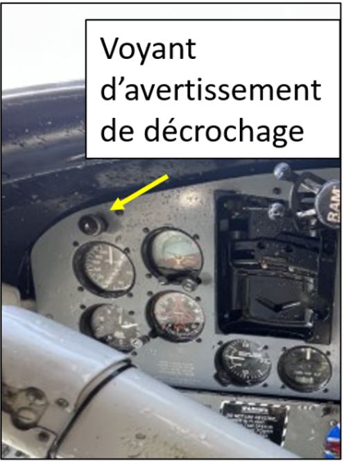 Dans l’aéronef à l’étude, un voyant d’avertissement de décrochage était installé sur le tableau de bord de l’aéronef, au-dessus de l’anémomètre.