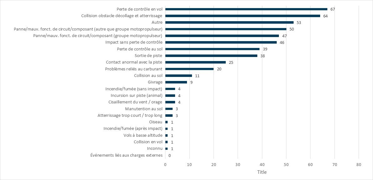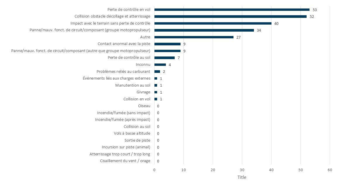 Afin de déterminer les types d'accidents qui se sont produits pendant la période de l'étude, l'équipe a d'abord utilisé le système établi par l'Organisation de l'aviation civile internationale (OACI). Cependant, le système de l'OACI ne s'est avéré insuffisamment descriptif, car il a été conçu pour les opérations de transport aérien régulier plutôt que pour le secteur du taxi aérien. De plus, le système rend compte des résultats des accidents, et non des circonstances qui ont mené à un accident, lesquelles étaient importantes pour la présente analyse.