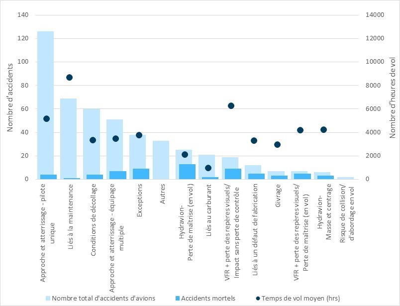 L'analyse des données sur les accidents a aussi révélé que les facteurs ayant contribué aux accidents de taxi aérien qui sont survenus pendant la période de l'étude s'inscrivaient dans 2 grandes catégories :