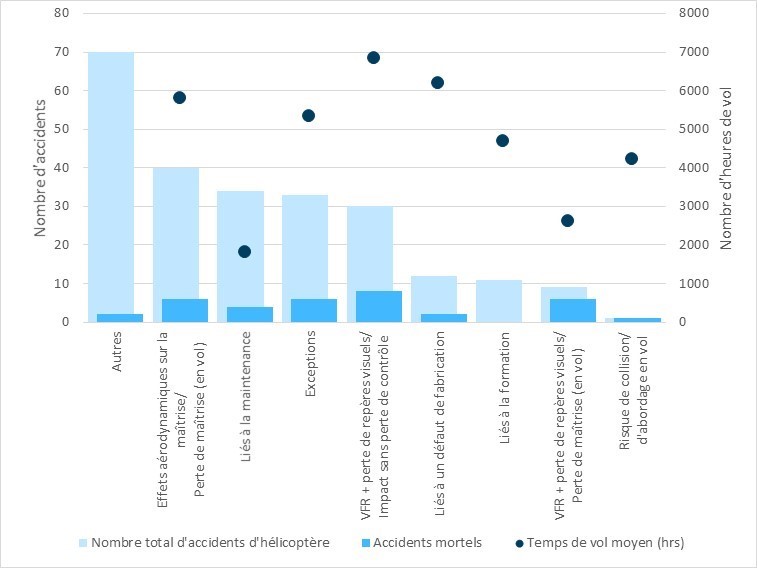 Elle a révélé que le plus grand nombre de morts, dans les accidents d'avion aussi bien que d'hélicoptère, résulte de vols ayant commencé dans des conditions météorologiques de vol à vue, puis s'étant poursuivis jusqu'à un point où le pilote a perdu ses repères visuels au sol. La principale différence était la manière dont les vols se terminaient : une perte de maîtrise ou un impact sans perte de contrôle.