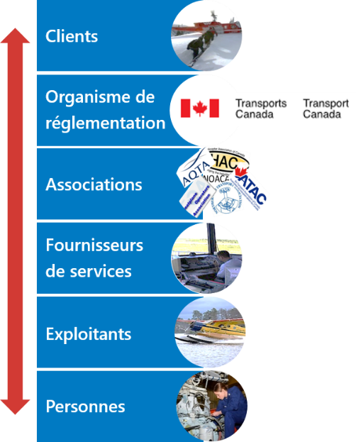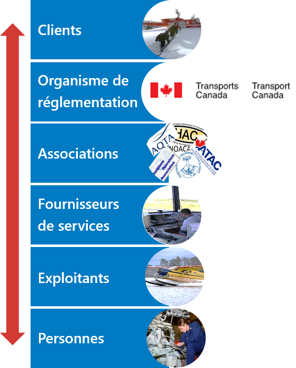 Au cours des dernières années, certaines organisations, comme la Floatplane Operators Association, l'Association du transport aérien du Canada (ATAC), l'Association canadienne de l'hélicoptère (ACH), la Medallion Foundation, le Circle of Safety Program de la Federal Aviation Administration et le Tour Operators Program of Safety, se sont réunies pour améliorer la sécurité dans des secteurs où le nombre d'accidents était élevé. Les initiatives qu'elles ont organisées vont au-delà des règlements et établissent des normes élevées pour leurs membres. Ces initiatives peuvent servir de modèle pour améliorer la sécurité des taxis aériens au Canada (annexe D); la participation des exploitants peut également alimenter la confiance et la motivation chez leurs clients et passagers.