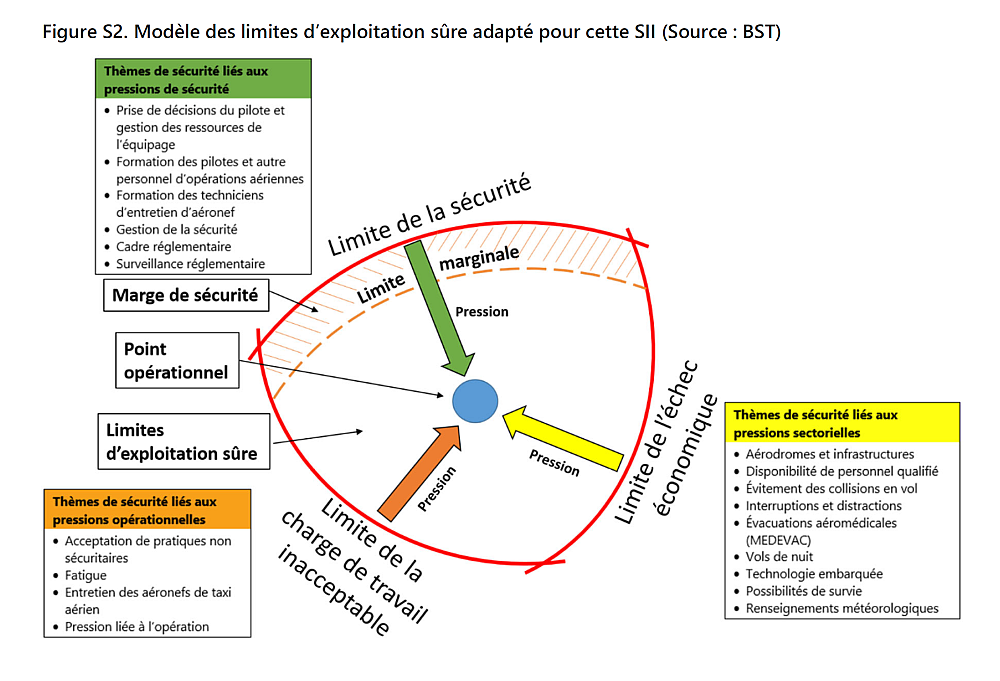Pour comprendre comment ces questions de sécurité interagissent entre elles, l'équipe d'enquêteurs a analysé les thèmes de sécurité au regard du modèle des limites d'exploitation sûre (figure S2).