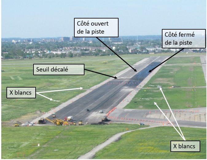 Toute piste, à un moment ou à un autre, nécessitera des travaux de réfection. La méthode couramment utilisée, autant au Canada qu’ailleurs dans le monde, consiste à réduire temporairement la longueur de la piste en fermant les extrémités et à effectuer les travaux sur une extrémité ou les deux à la fois.