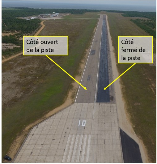 La réduction de la largeur de la piste n’exigeant pas la fermeture complète de la piste, cette méthode présente un avantage décisif pour les exploitants de certains aéroports qui ont des impératifs opérationnels ou font l’objet de pressions économiques précises, ce qui était le cas des 4 aéroports visés par la présente enquête. Cette méthode peu courante exige cependant que les précautions nécessaires soient prises pour assurer la sécurité des opérations aériennes.