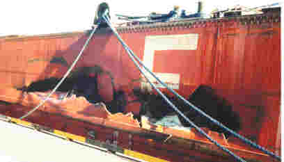 Le «SILVER ISLE» a subi de lourdes avaries sur le côté bâbord, à l'avant, au centre et à l'arrière. Les avaries au «SERSOU» étaient également importantes mais elles se sont limitées à l'avant bâbord.