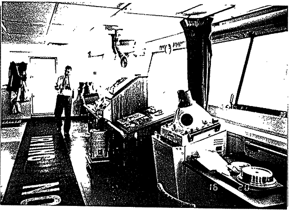 Le capitaine étant sur un pont inférieur, trois personnes se trouvaient sur la passerelle : le pilote, l'officier de quart et le timonier. Le pilote avait la conduite du navire, l'officier de quart suivait la progression du navire et le timonier gouvernait le navire manuellement.