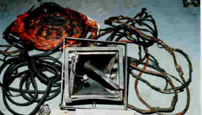 - Le boîtier d'extrémité en aluminium du vibreur, qui se trouvait à l'arrière des commandes hydrauliques du clapet de silo no 4, avait fondu et on a retrouvé une grosse goutte d'aluminium fondu sur la plate-forme.