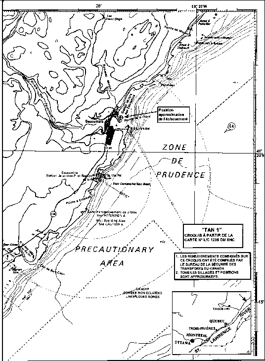 Des experts maritimes de la Garde côtière canadienne (GCC) étaient montés à bord du «TAN 1» le 23 juillet 1993 afin de l'inspecter et avaient remis à son propriétaire une liste d'objets manquants ou non conformes à la réglementation.