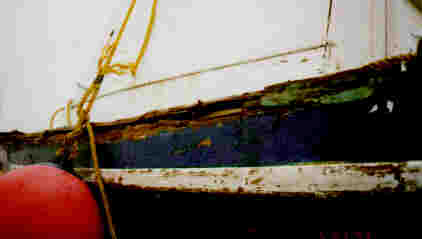 On a constaté que l'étrave était très endommagée par la pourriture, tout comme certaines parties du pont et du carreau.