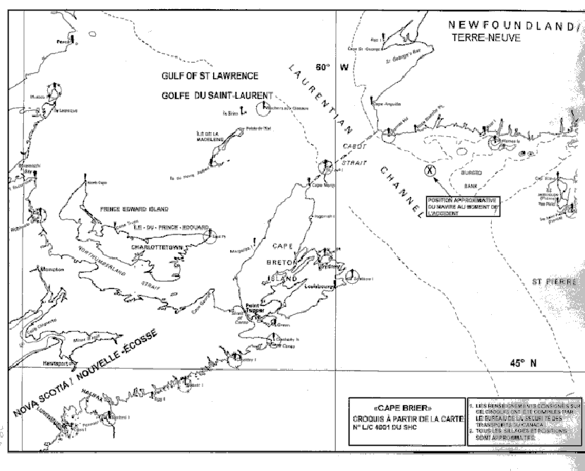 Le «CAPE BRIER» a appareillé de Lunenburg (Nouvelle-Écosse) vers 10 h 303, le 11 octobre 1993, pour aller pêcher le sébaste au large de la côte sud de Terre-Neuve.