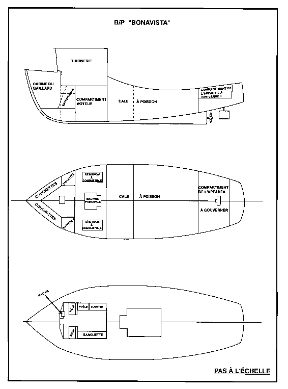 - la cale à poisson, le plus grand compartiment du navire, juste en arrière du milieu;