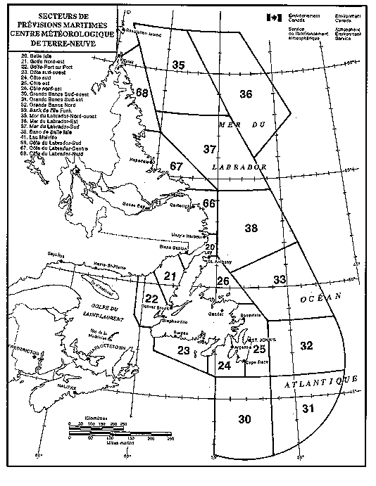 Le Centre météorologique de Terre-Neuve diffuse aussi des prévisions de l'état de la mer. Le bulletin de 6 h pour les secteurs maritimes des côtes est et nord-est, le mercredi 12 octobre 1994, faisait état de lames de deux ou trois mètres pouvant atteindre cinq ou six mètres en soirée.