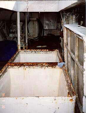 Les cales à poisson (14, 15, 16, 17, 18 et 19) ont été transformées pour le transport du poisson conservé dans une saumure aérée, de même que les deux réservoirs à poisson/ballasts avant (12 et 13). Les panneaux d'écoutille permettant de descendre dans les cales à poisson à partir du pont-abri ont été remplacés par des panneaux en aluminium percés de trous d'accès circulaires pour laisser passer le poisson (photos 9 et 10). Ni les panneaux d'écoutille ni les panneaux des trous d'accès n'étaient étanches et ils n'étaient pas munis de moyens de verrouillage. Aucun évent n'a été installé lors de la transformation des cales en réservoirs à poisson.