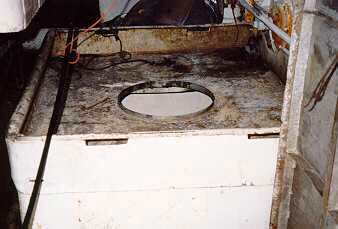 Après les modifications et alors que le navire était en mer, l'équipage avait quelquefois eu à faire face à une inondation du pont-abri par suite de l'entrée d'eau par le robinet-vanne du puisard qu'on laissait toujours ouvert. Comme le convoyeur à poisson est enfermé jusqu'à une hauteur de 45 cm au-dessus du niveau du pont-abri (photo 12), l'eau devait monter jusqu'à ce niveau avant que ne débute l'inondation du pont. Chaque fois que le pont-abri a été inondé, on a réglé le problème en fermant le robinet-vanne.