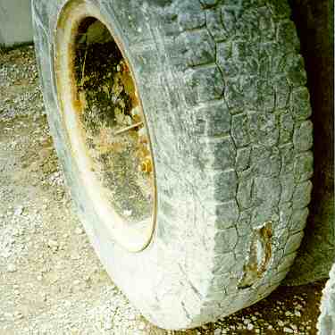 Une inspection effectuée par le ministère provincial des Transports le 27 septembre a révélé que 7 des 10 pneus du véhicule, bien qu'usés, étaient néanmoins dans un état conforme au règlement, tandis que les bandes de roulement des deux pneus extérieurs du côté droit à l'arrière étaient usées au-delà des limites réglementaires. En outre, la bande de roulement d'un des pneus extérieurs du côté gauche à l'arrière était endommagée au point que l'armature interne de fils métalliques était exposée sur environ 20 cm de longueur par 6 cm de largeur. La rouille et l'usure de l'armature métallique exposée laissent croire que ces dommages étaient antérieurs à l'immersion du véhicule par suite de l'événement (voir l'annexe C, photos nos 2, 3 et 4).