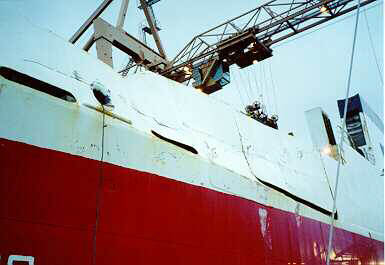 Le «ZIEMIA ZAMOJSKA» a subi des avaries limitées en-dessous de l'échelle de coupée située à l'arrière du côté bâbord et au-dessus du pont principal. Le pont supérieur a été bombé sur une longueur d'environ 2 m. Deux barres en forme de T servant au lancement de l'embarcation de sauvetage entre le pont supérieur et le pont principal ont été enfoncées et déformées. Les avaries s'étendent sur une superficie d'environ 9 m de long sur 3,5 m de large à l'endroit où la coque a été enfoncée vers l'intérieur.