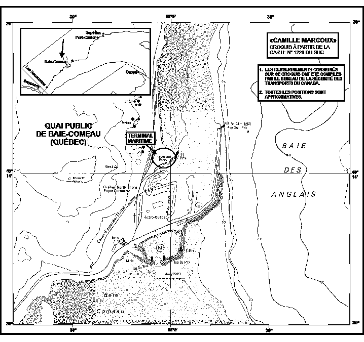 Le 9 juillet 1996, le traversier canadien «CAMILLE MARCOUX» était accosté à l'embarcadère-débarcadère de Baie-Comeau (Québec). Pendant les dernières étapes du chargement des véhicules sur le pont-garage, une dépanneuse remorquant une bétonnière s'est engagée sur le tablier qui mène au pont-garage. Après avoir garé la bétonnière, la dépanneuse a fait marche arrière en direction de l'embarcadère-débarcadère et a heurté un piéton qui circulait lui aussi sur le tablier de l'embarcadère-débarcadère, dos à la dépanneuse.