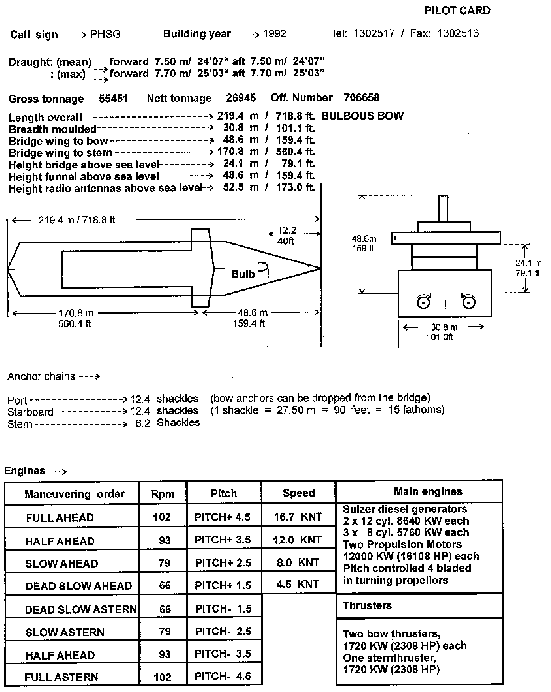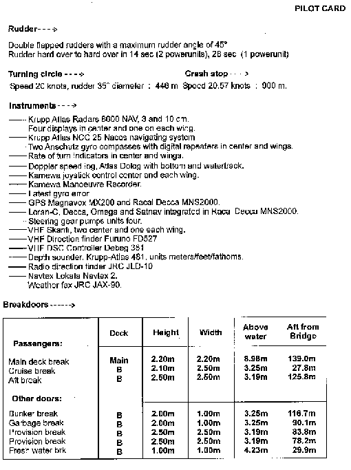 | Groupe propulseur | Moteurs diesels-électriques Sulzer, 24 000 kW, deux hélices à pas variable | Moteur dieselc Caterpillar, 1 406 BHP, deux hélices à pas fixe | Sans moyen de propulsion |