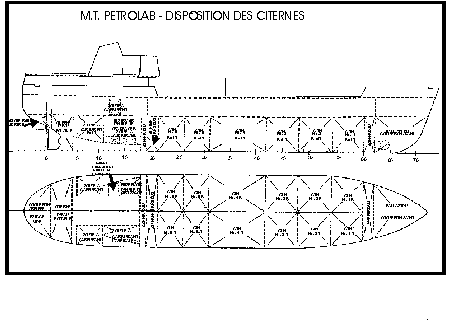 Le pétrolier « PETROLAB » était un navire à coque d'acier qui avait été construit en 1962 en Norvège. Il comportait des emménagements et une salle des machines à l'arrière et six paires de citernes de transport d'hydrocarbures (CTH) numérotées de 1 à 6 (bâbord et tribord) à partir de l'avant. Le pont principal était fermé par un entrepont qui abritait le matériel de pompage et les canalisations. Cet entrepont servait également à entreposer des flexibles de cargaison, du matériel et des huiles de graissage qui étaient vendus dans divers ports. Il y avait un cofferdam arrière aux membrures 18 à 21 entre la salle des machines et les CTH no 6. Des citernes à résidus conçues à cet effet (7,97 m3) étaient situées entre les membrures 19 et 21, au fond du cofferdam. Une porte de secours aménagée du côté bâbord de la cloison avant de la salle des machines communiquait avec le cofferdam et avec les échelles donnant accès au pont principal.