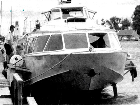 - Comme l'hydroptère filait à une vitesse supérieure à la vitesse recommandée pour le mode de déplacement avec tirant d'eau, l'avant et les fenêtres avant ont été engloutis par les lames.
