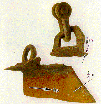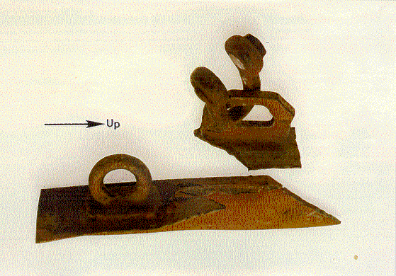- La section du haut de la jambette au droit de l'oreille était fortement corrodée et l'aile avant, qui était pliée au-delà de l'angle de 90 degrés originel, était très visible.