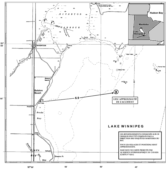 Le 23 octobre 1999, vers 6 h 45Note de bas de page 3, trois « barques du lac Winnipeg » partent du port de Hnausa (Manitoba) pour se rendre dans un lieu de pêche situé à environ 6,9 milles à l'est-nord-est du port. Les pêcheurs commencent à pêcher le brochet, le doré noir et la laquaiche au filet maillant. Au début de l'après-midi, un des bateaux de pêche rentre au port de Hnausa.