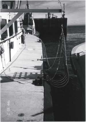 Sur les armatures placées de chaque côté du château, les treuils manuels servant à hisser à bord une personne à la mer ne sont pas munis d'un loquet pouvant empêcher le câble qui retient la partie inférieure du dispositif de se dérouler. La tension est maintenue manuellement sur la manivelle pour assurer la remontée de la personne que l'on vient de récupérer. Quand une personne seule doit faire fonctionner le dispositif par mauvais temps ou aider la personne récupérée à mettre pied à bord, l'opération devient difficile et risquée.
