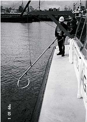 Comme le franc-bord du bateau-pilote est de 1,5 m, l'extrémité de l'échelle n'atteint que la surface de l'eau. Le pilote essaie tant bien que mal de s'agripper à l'échelle mais en trouve l'accès difficile du fait qu'il ne peut y placer un pied pour s'y hisser. De plus, comme la coque est inclinée, l'ascension vers le pont est difficile et nécessite beaucoup d'efforts. Vu la situation et l'épuisement du pilote, on demande au mécanicien sur le pont de venir aider les autres à repêcher le pilote. Il demeure difficile de remonter le pilote même si trois personnes participent maintenant à l'opération. L'opérateur vient alors rejoindre les autres sur le pont arrière pour leur prêter main-forte. On passe une amarre sous les bras du pilote qui est dans l'eau et, après maints efforts, on réussit à le remonter sur le pont après plusieurs minutes.