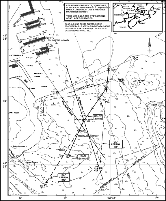 Même s'il appert que le capitaine était déjà entré dans le port de Halifax aux commandes de son propre voilier et qu'il connaissait bien l'endroit, il n'avait pas préparé de plan de sortie ou un arrangement plus simple qui aurait permis d'identifier des marques de distance ou des alignements susceptibles de faciliter la navigation du « BLUENOSE II », un navire beaucoup plus grand. Il croyait bien pouvoir faire le point en s'aidant des amers du secteur.