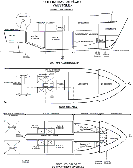 Le Westisle est un senneur harenguier classique de la côte ouest, à coque en acier. Les logements de l'équipage sont situés sous les ponts à l'avant. Le compartiment machines se trouve juste derrière; le moteur principal est placé sur l'axe longitudinal et est situé à bâbord et à tribord des soutes à carburant principales. Chaque soute à carburant est munie d'un évent à flotteur qui aboutit sur le pont exposé près du pavois. Un tunnel axial s'étend vers l'arrière à partir du compartiment machines entre les cloisons longitudinales des cales à poisson de bâbord et de tribord et se rend jusqu'à une porte étanche qui donne sur la cambuse.