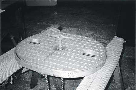 - Les couvercles d'écoutillon n'avaient pas de charnière et ils n'étaient pas fixés par une chaîne à la structure du navire.