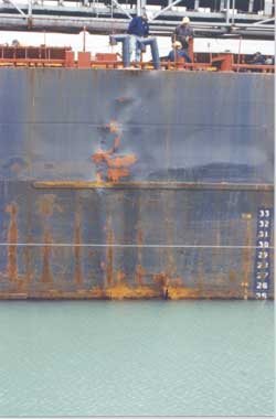 Au total, il y avait quelque 31,8 tonnes de lest d'eau à bord du navire au moment de l'incident le 1er juin 2000. Toutes les citernes de ballast ont été pompées en ordre séquentiel, laissant 11,8 tonnes dans le coqueron avant et 20 tonnes dans le coqueron arrière.