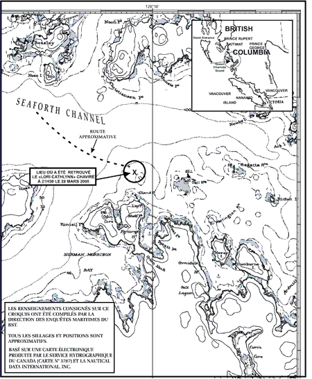 Pendant la traversée du mouillage Powell à Waglisla (Colombie-Britannique), le petit bateau de pêche Lori Cathlynn a donné de la bande sur tribord, a été envahi par les hauts et a chaviré dans le passage Seaforth près de l'île Campbell. Le bateau transportait des oeufs de hareng sur du varech dans des bacs de manutention arrimés sur le pont. La météo et la mer étaient relativement calmes. Les cinq membres de l'équipage ont été repêchés sains et saufs.