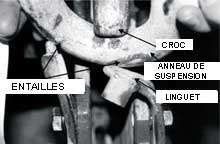 Le linguet est conçu pour pivoter de façon à ne s'ouvrir que vers l'intérieur du croc (voir la figure 6). Cela permet d'insérer l'anneau de suspension dans le croc de manière à l'empêcher de glisser accidentellement. Le linguet n'est pas conçu pour supporter un poids important.