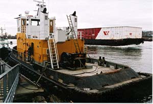 Le Miller Richmond (voir la photo 1) est un remorqueur de faible tirant d'eau qui est construit en acier et dont la superstructure est aménagée sur l'avant. Il est équipé sur l'arrière d'un treuil de remorquage à entraînement hydraulique sur lequel est enroulé un câble de remorquage en acier de 28 millimètres (mm) de diamètre et de 670 mètres (m) de long, et d'une patte-d'oie en fil d'acier de 25 mm de diamètre et d'environ 17 m de long. Deux amarres de polypropylène de 100 mm, chacune mesurant environ 10 m de long et munie d'oeils à chaque extrémité, sont utilisées pour relier les chalands l'un à l'autre.
