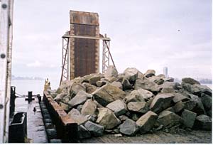 La pile de protection du pont a subi des dommages considérables. La partie bétonnée située à l'avant de la pile a été endommagée, et les longerons placés au sommet de la pile de protection ont été brisés/fissurés. Il a fallu remplacer certains boulons de fixation des longerons.