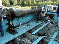Le long du plat-bord tribord, il y a un tambour hydraulique sur lequel les filets s'enroulent. On utilise ce tambour pour mettre à l'eau les filets maillants (voir la photo 2). On rentre ensuite les filets chargés du côté bâbord et on les fait passer d'un côté à l'autre du pont du coffre, en extrayant le hareng des mailles du filet et en le faisant tomber sur le pont découvert. Une fois vide, le filet est enroulé sur le tambour, prêt à être remis à l'eau. On peut utiliser plusieurs filets maillants au cours d'un même cycle de pêche.