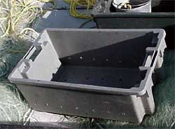 Sur les 9 tonnes de hareng qu'on avait rentrées à bord du Alain-Josée, seulement 7,5 % de la prise totale était contenu dans des caisses à poisson arrimées (voir la photo 6). La plus grande partie du hareng (8,4 tonnes) était en vrac sur le pont et ballottait au gré du roulis et du tangage du bateau. Contrairement à celui de certains autres bateaux à pont découvert qui sont affectés à la pêche du hareng, le pont du Alain-Josée n'est pas équipé de planches de séparation mobiles qui se glissent dans des montants verticaux fixés au pont et au périmètre du pont du coffre. Ces planches de séparation sont disposées de façon à diviser le pont du coffre dans le sens longitudinal et transversal et forment de petits enclos qui réduisent considérablement le mouvement du poisson sur le pont. S'il y avait eu un tel arrangement à bord du Alain-Josée, le bateau aurait été plus stable et aurait mieux tenu la mer.