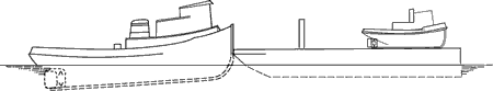 Sur le pont principal immédiatement à l'arrière de la superstructure se trouvent un treuil de remorquage, des bittes de remorquage et une remorque pour faire du remorquage. (Voir photo 1.) Le remorqueur n'est pas conçu ni aménagé pour le poussage de chalands.