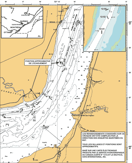 Le navire revient ensuite au port de Bécancour. Un examen sous-marin de la coque révèle des égratignures et des marques d'abrasion sur la peinture et des dommages à la hauteur des extrémités de pale de l'hélice.
