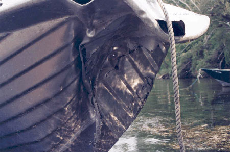 Le Sheddey-O a subi une déformation structurale à l'avant : avaries au bordé du pont principal; déformation de la coque; et séparation des plaques de l'ossature (voir la photo 4). La cabine du capitaine a aussi subi des avaries mineures (voir la photo 5). Le chaland n'a subi comme avaries que de légères éraflures à la peinture.