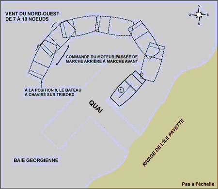 - ensuite, le bateau de travail cule en contournant le quai, vers l'ouest, sur 15 à 20 m;