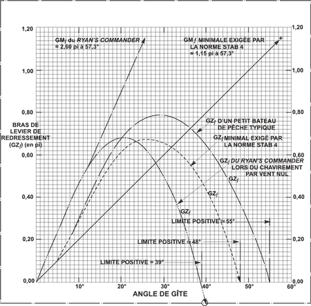 Annexe C - Comparaison des courbes GZ du Ryan's Commander, de la norme STAB 4 et d'un petit bateau de pêche typique