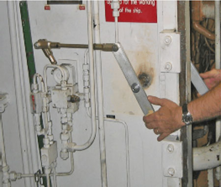 Les règles qui régissent la construction, l'installation et le fonctionnement des portes étanches sont édictées dans le Règlement sur la construction de coques de la Loi sur la marine marchande du Canada. Voici un extrait d'un article qui traite de l'installation des portes étanches :